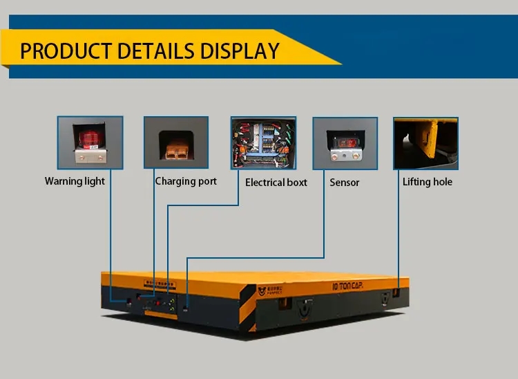 Battery powered rail cart is powered by battery, the battery is installed inside the flat cart. The power supply provides power to DC traction motors through an electrical control system to control start, stop, advance, retreat, speed control, etc. of the flat cart.
