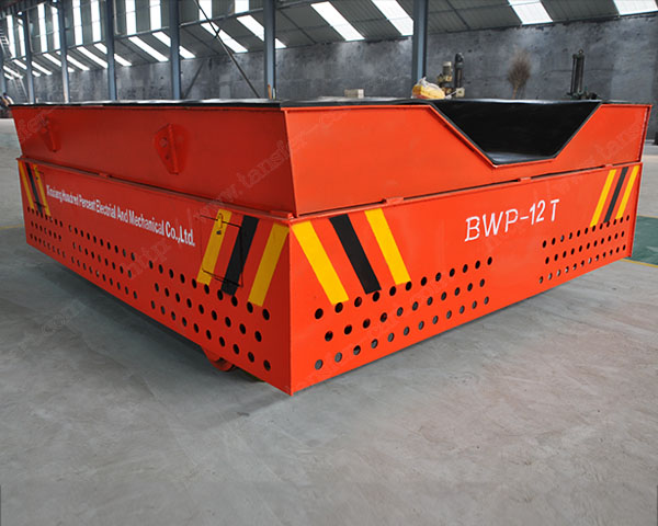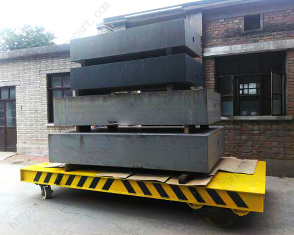 ► Product Brief of trackless die transfer trolley 1, Trackless Die Transfer Trolley powered by battery, transfer heavy duty cargo from one site to other in factory.