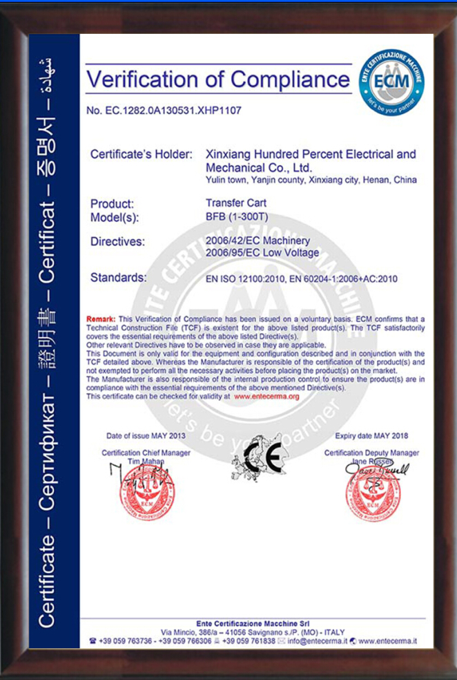 Our company is the manufacturer of transportation cart, and we always adhere to the "quality first, reputation first" principle. After its establishment, we has already firstly won the honor title of "Good Faith Business Advanced Units". Along the journey,within 1 month, we obtained "Credit Rating AAA Level Enterprise", "China Quality Brand Center", "The Contract and Trustworthy Enterprise", three titles. After that, we also got four honors, "National Famous Brand", "High-quality Products of Henan Province", "Quality Faith Consumer-Trust Units", "Contract Trustworthiness Enterprise", "AAA Grade Quality Integrity Members" and so on. The products of our company has passed the ISO9001 international quality system certification, SGS, CE, SASO certification. We also won five product patents, which filled the domestic blank, they are patent of trackless electric transportation cart,utility model and appearan