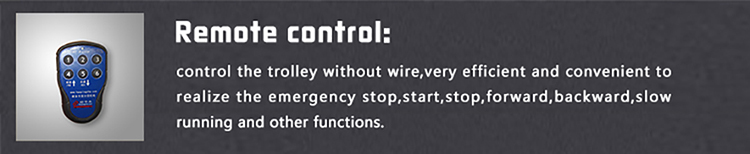 Battery steel Transfer Trolley has three kinds of towing handle, remote control and vehicle-mounted control box, the length of towing control handle is generally 3m or 5m, the control handle has four keys and one rocker, four keys are: starting, stopping, advancing and retreating. The rocker controls the steering of the battery powered car, the rocker moves to the left, the flat car turns to the left, the rocker moves to the right, and the flat car turns to the right (the direction of the motor is in the direction of the forward, if you want the car to stop, loosen the forward or back button or press the stop button. If you want to start again, stop clockwise Press start. Remote control for six keys control, respectively: start, stop, forward, back, left and right turn, left or right turn, you must press the corresponding key at the same time, when you start again, you can press the start button directly. The handle and the remote control cannot control the flat car at the same time (the control box has the handle and the remote control switch. Battery powered Transfer Trolley has the handle place box, may facilitate the handle and the remote control position.