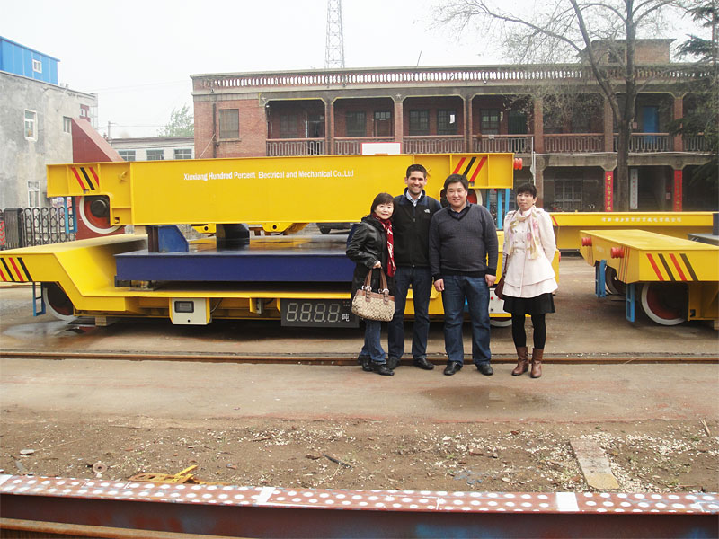 In April, our client from Mexico visited our factory and checked our welding, assembly, and commissioning on site. After visiting our factory, the client gave us good comment about our product quality and processing. Our client is a manufacturer of seamless rolled ring and open die forgings. They ordered cable reel powered rail cart and the cart is used for transporting round bars to polish between bays.