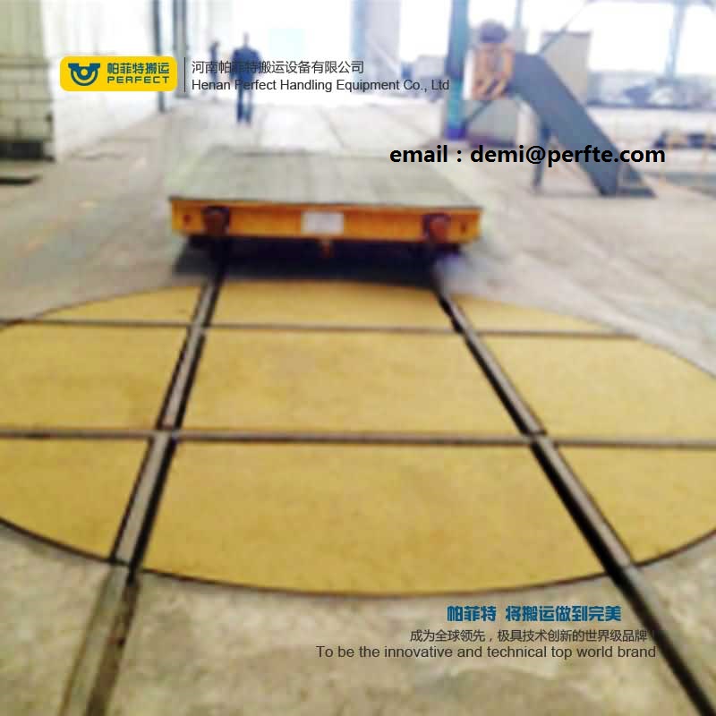 The Industrial Electric Turnplate is one of our patented products, which can make the rail transfer cart turning on the cross rails. When the cart running on the turntable, there will be a limit switch make the Industrial Electric Turnplate cart stop, and then operate the turntable turn whatever direction you want. The Industrial Electric Turnplate is equipped with rails to realize the joint or the cross rails.