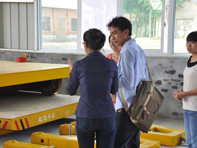 Thailand customer from stainless steel plant came to our mill for steerable transfer vehicle acceptance Inspection. He watched the transfer vehicle running on site and knew some relative operation. The client ordered two trackless transfer vehicles and are used for handling steel coil between bays. He expressed his content in whole acceptance Inspection
