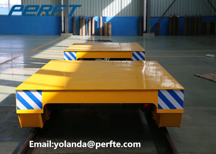 Battery track flat transfer trolleys has greater safety performance and mobility flexibility than rail power level vehicle. Battery track flat transfer trolleys can run on bends and turnouts without restriction on running distance and no insulation requirement on track. Therefore, construction is convenient and cheap. Battery track flat transfer trolleys has no external power supply and can turn and run on various irregular tracks of C and S. Battery track flat transfer trolleys has no restriction on running distance and can run cross-over with other vehicles. Battery track flat transfer trolleys is flexible and flexible. It has no requirement for track insulation. In track aspect, it has the characteristics of low cost and simple operation. Battery track flat transfer trolleys can run indoors and outdoors for a long distance, transport to factory area and has a generous layout. Then. Compared with the AC motor used in the rail carrier, the DC motor has the advantages of easy burning, large starting moment, strong overload capacity, smooth start and stop, and no jitter. The old track in the workshop can be used without modification and without the restriction of running distance. Battery track flat transfer trolleys can be adapted to the power supply mode of curved track operation. Battery on-board batteries of railway car need no external power supply, but their use time is limited and they need regular maintenance. This series of trolleys have no restrictions on the running route, can turn freely, and can be used in outdoor, rain and snow weather, high temperature, flammable and explosive working environment and other harsh occasions.