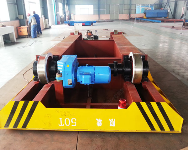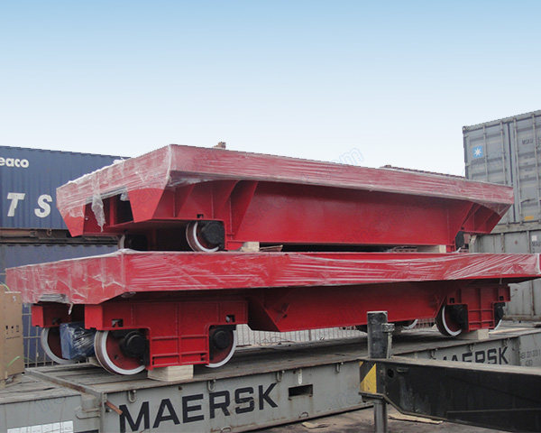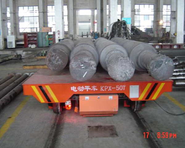 Battery Powered Steel pipe transfer trolley on rail tracks